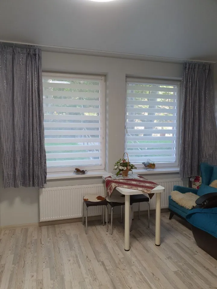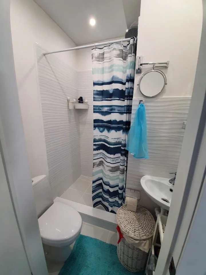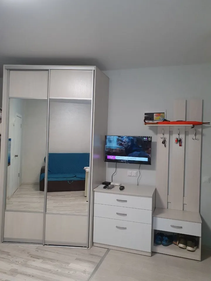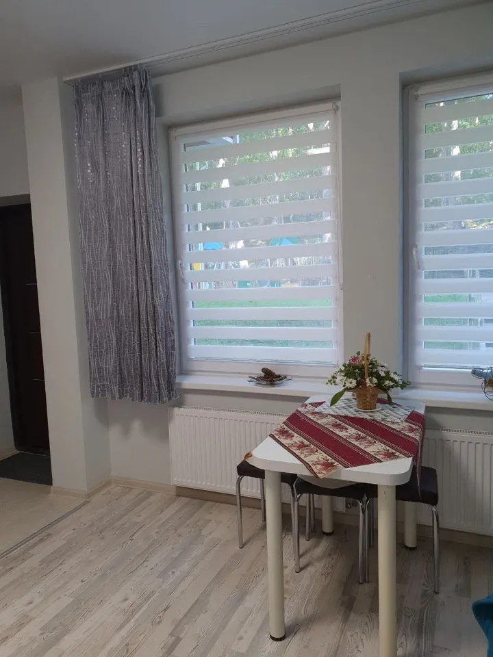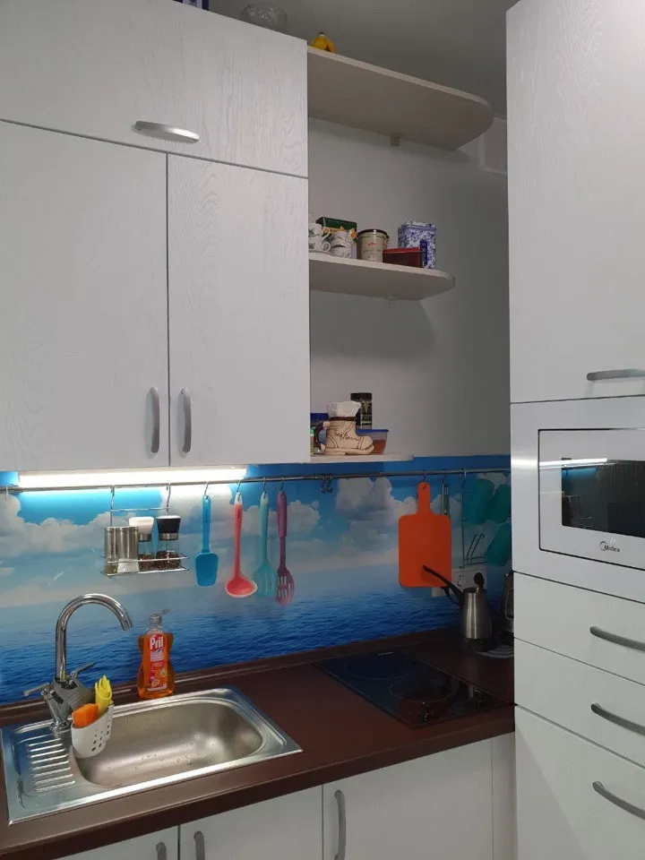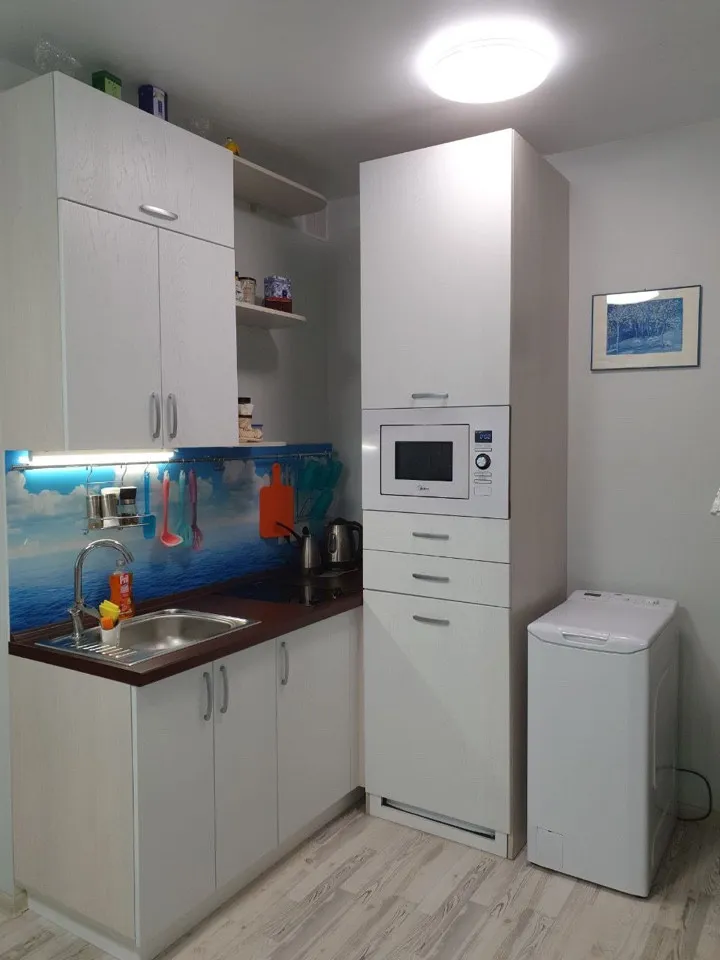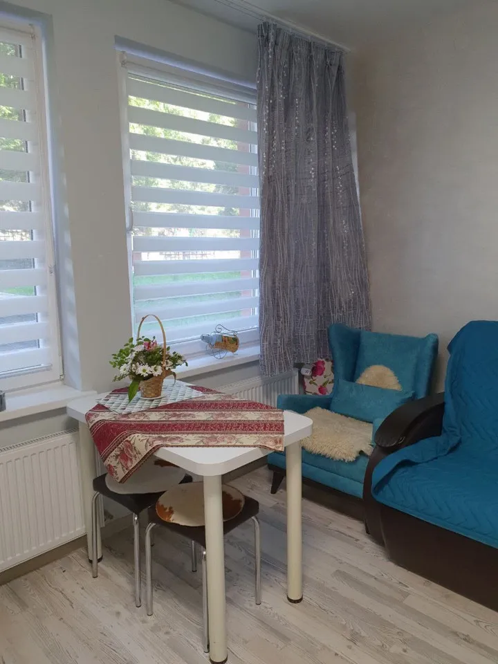 Общая площадь составляет 23,5 кв.м.Есть две кровати и диван.Душ,туалет, горячая, холодная вода . Теплый пол.Бонусом к апартаментам идет кладовка 6 кв.м в этом же доме на первом этаже.