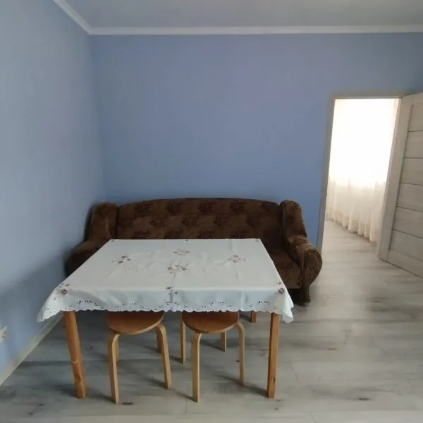 Общая площадь квартиры-46 метров. Большая кухня-гостиная-18 метров, жилая комната с двумя окнами)-15 метров,санузел-7 метров.