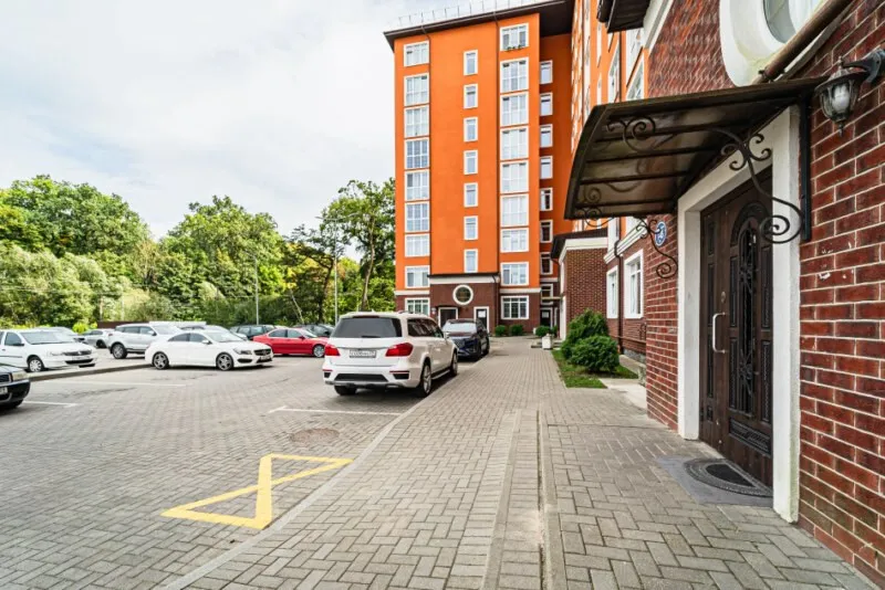 Большая парковка для автомобилей. Огороженная территория, видеодомофоны, камеры наблюдения, хорошая управляющая компания.