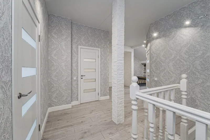 На первом уровне расположены: стильная кухня-гостиная площадью- 25 метров. Спальня с выходом на лоджию. Санузел. Коридор-16 метров-отдельное функциональное помещение. Изящная лестница ведет на второй уровень, на котором находятся: две спальни, санузел, холл и гардеробная.