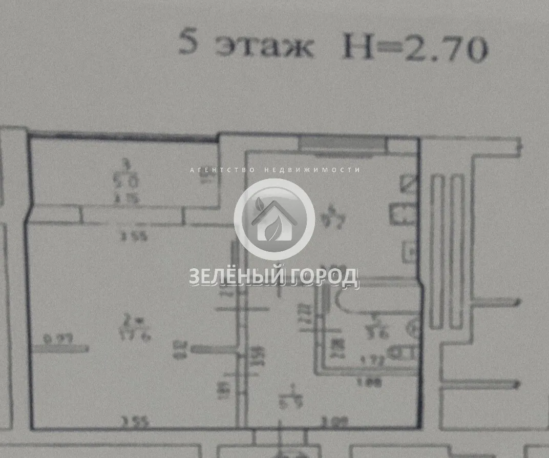 Общая площадь-42 метра. Комната-18 метров, кухня- 9 метров, прихожая-7 метров.