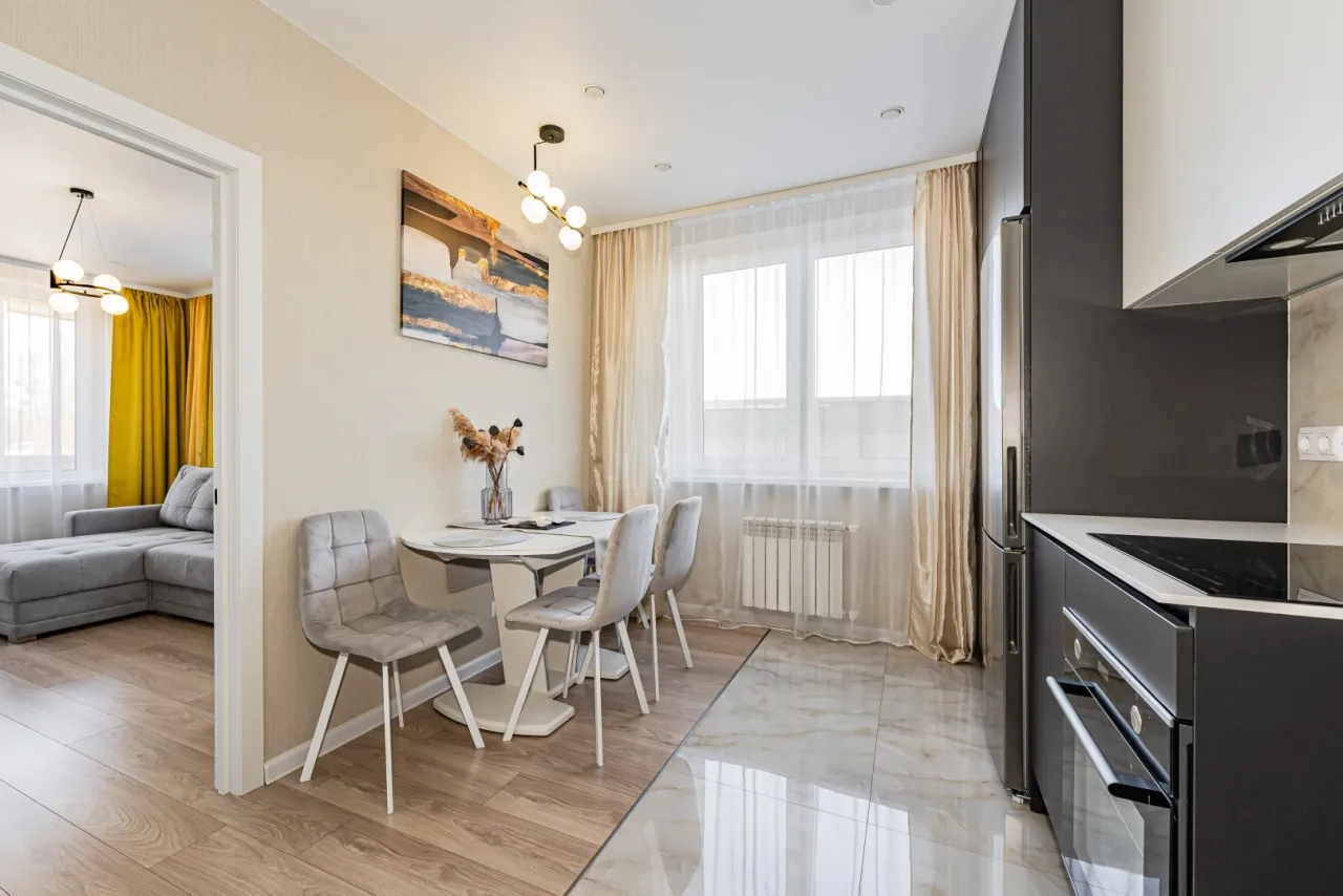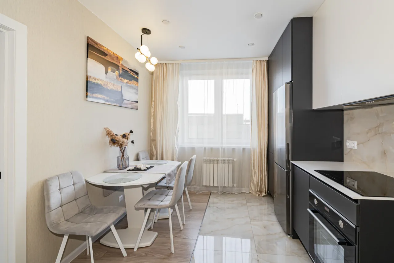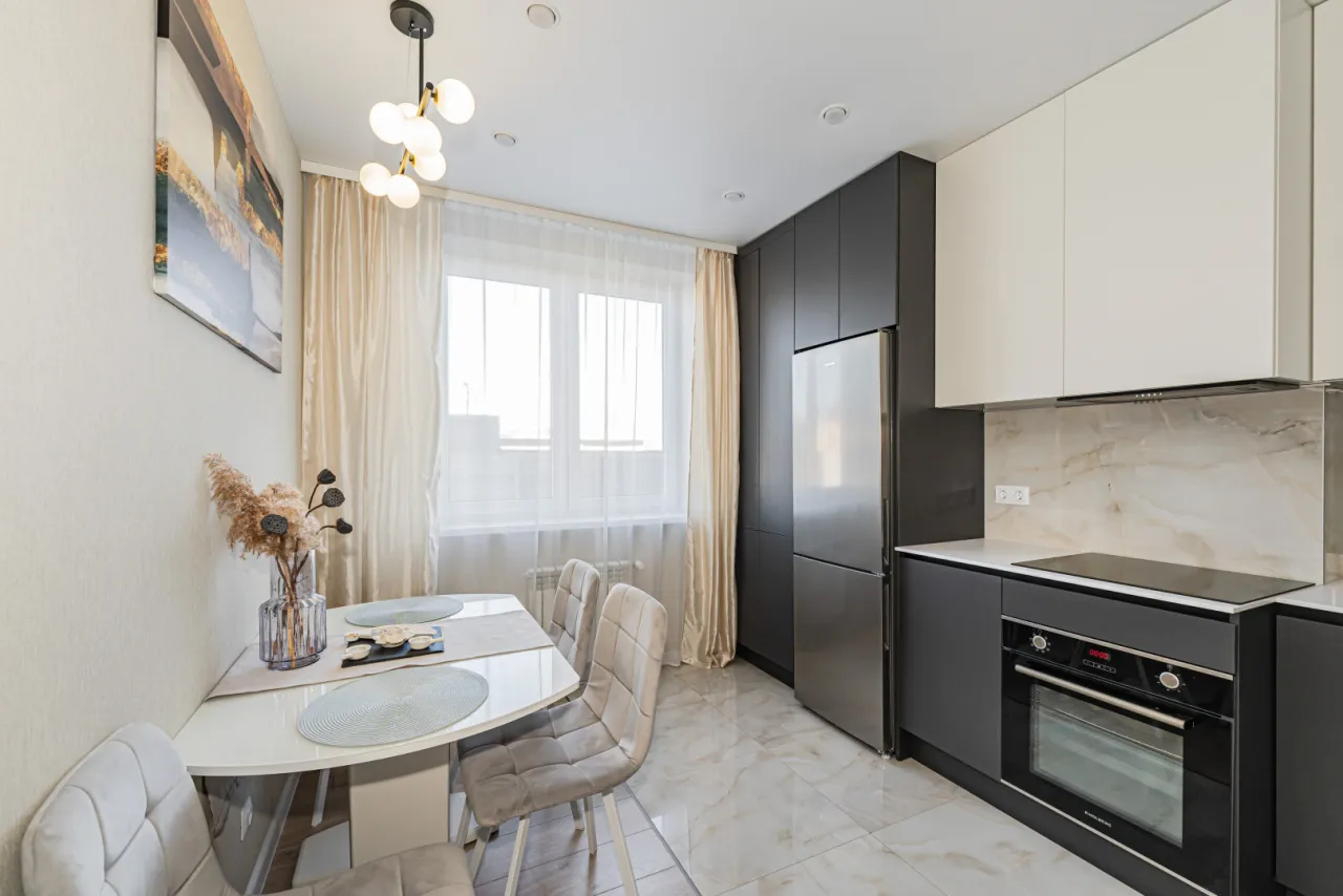 - кухня полностью оборудована всем, что нужно для жизни и работы (холодильник, индукционная плита, духовой шкаф, вытяжка, стиральная машина, тостер, чайник, посуда, вай-фай)