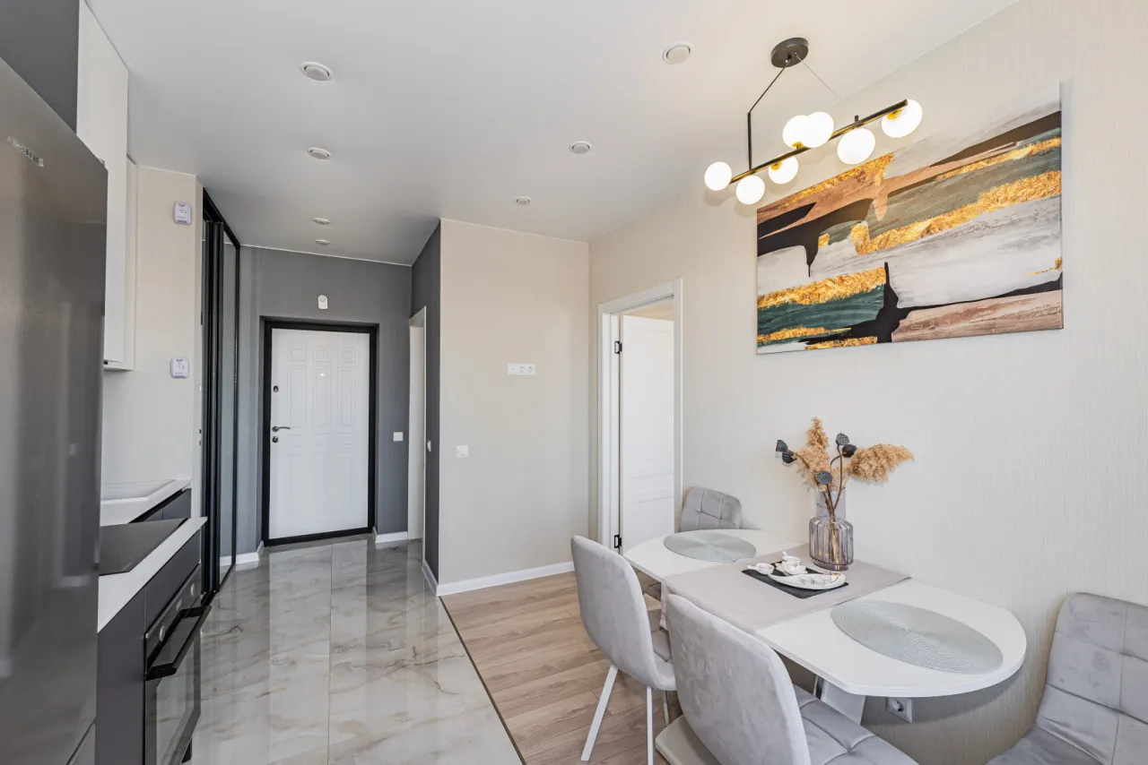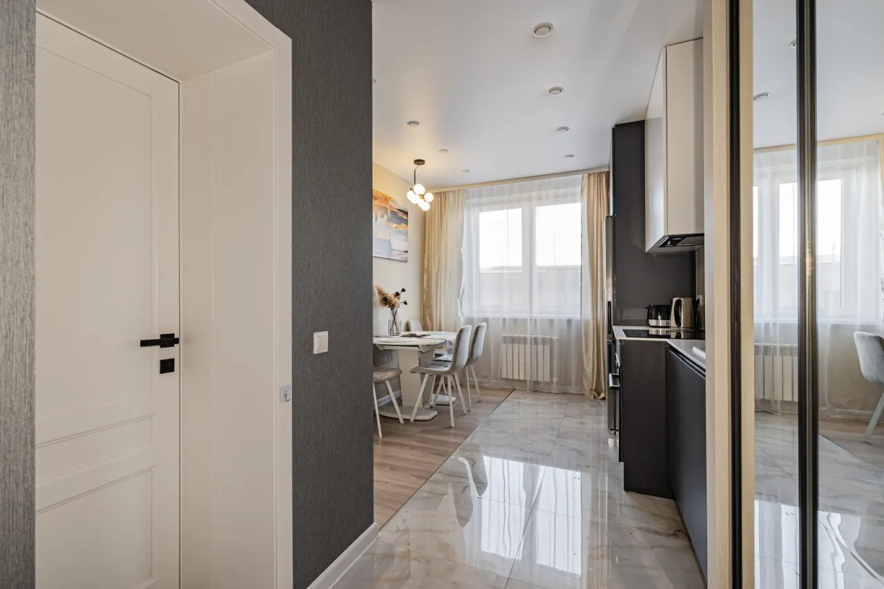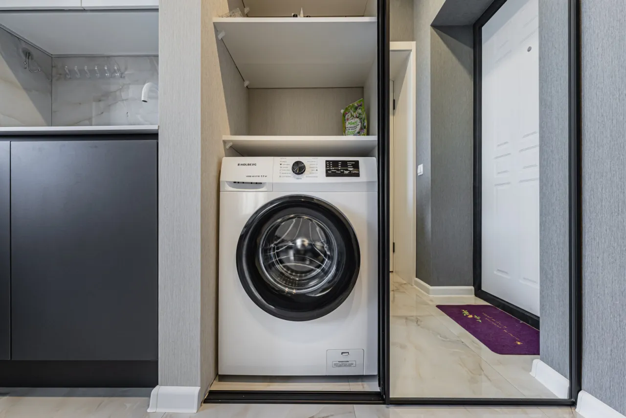 - кухня полностью оборудована всем, что нужно для жизни и работы (холодильник, индукционная плита, духовой шкаф, вытяжка, стиральная машина, тостер, чайник, посуда, вай-фай)