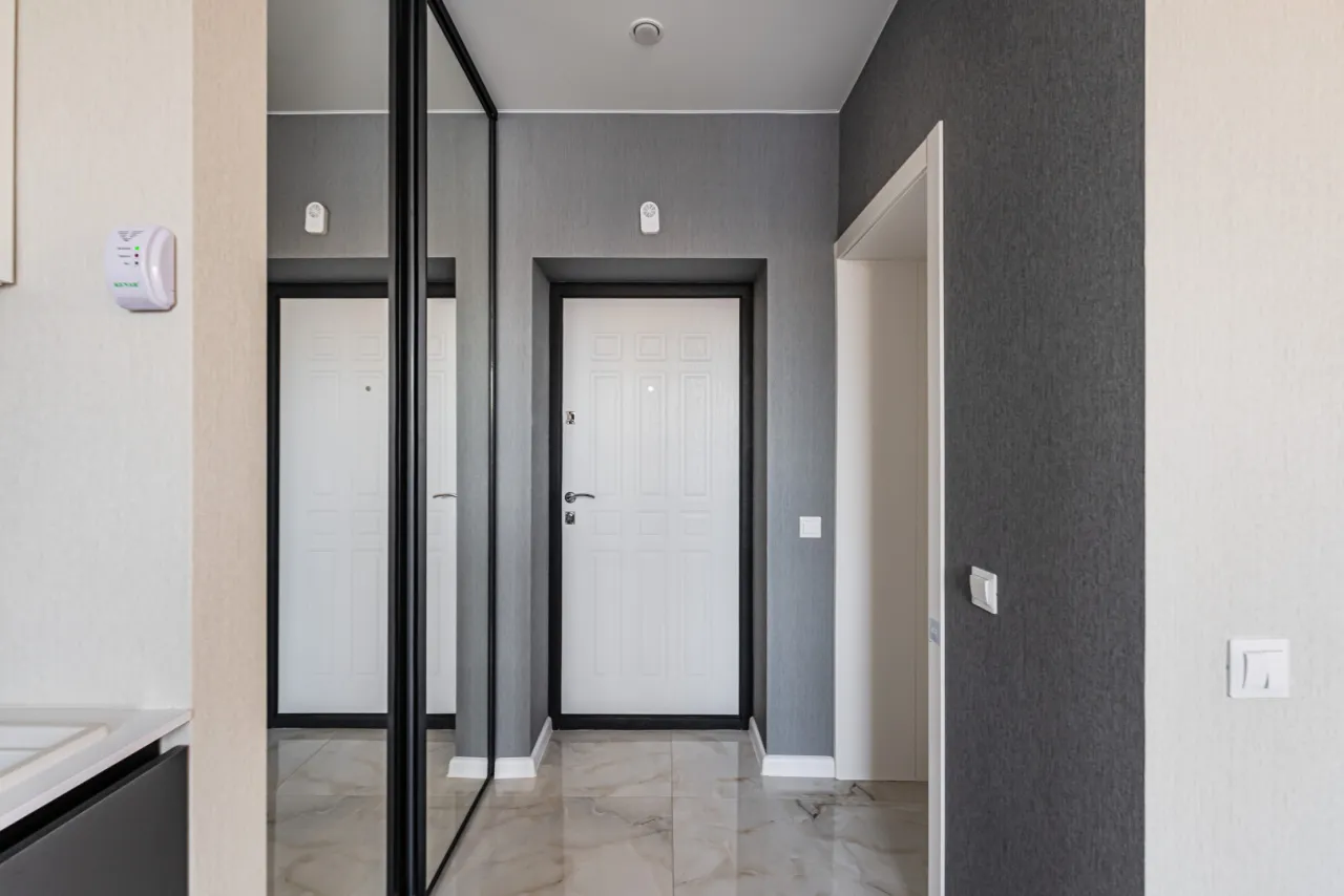 - в коридоре вместительный шкаф купе- первый высокий этаж