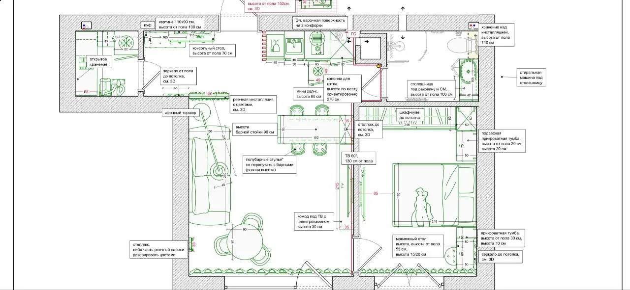 * Три выхода (первый из спальни на летнюю террасу-живая зеленая изгородь, второй из столовой, третий из коридора в подъезд)