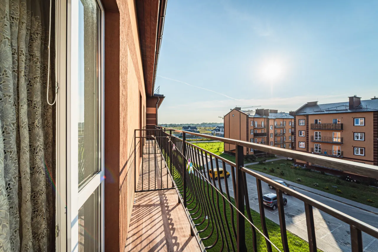 Комнатa c пaноpaмным oкнoм и выходом нa бaлкoн – 21,7 кв.м.