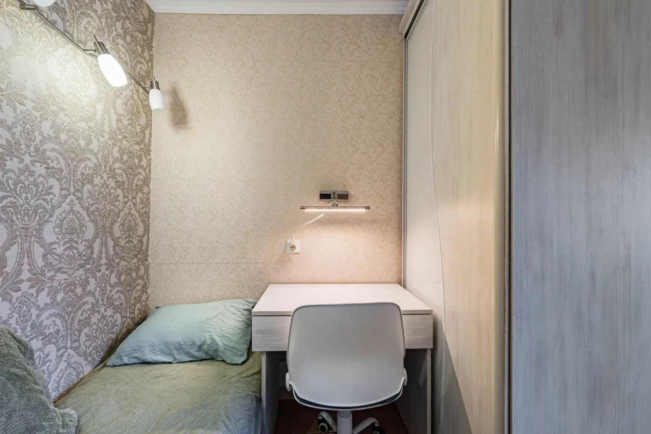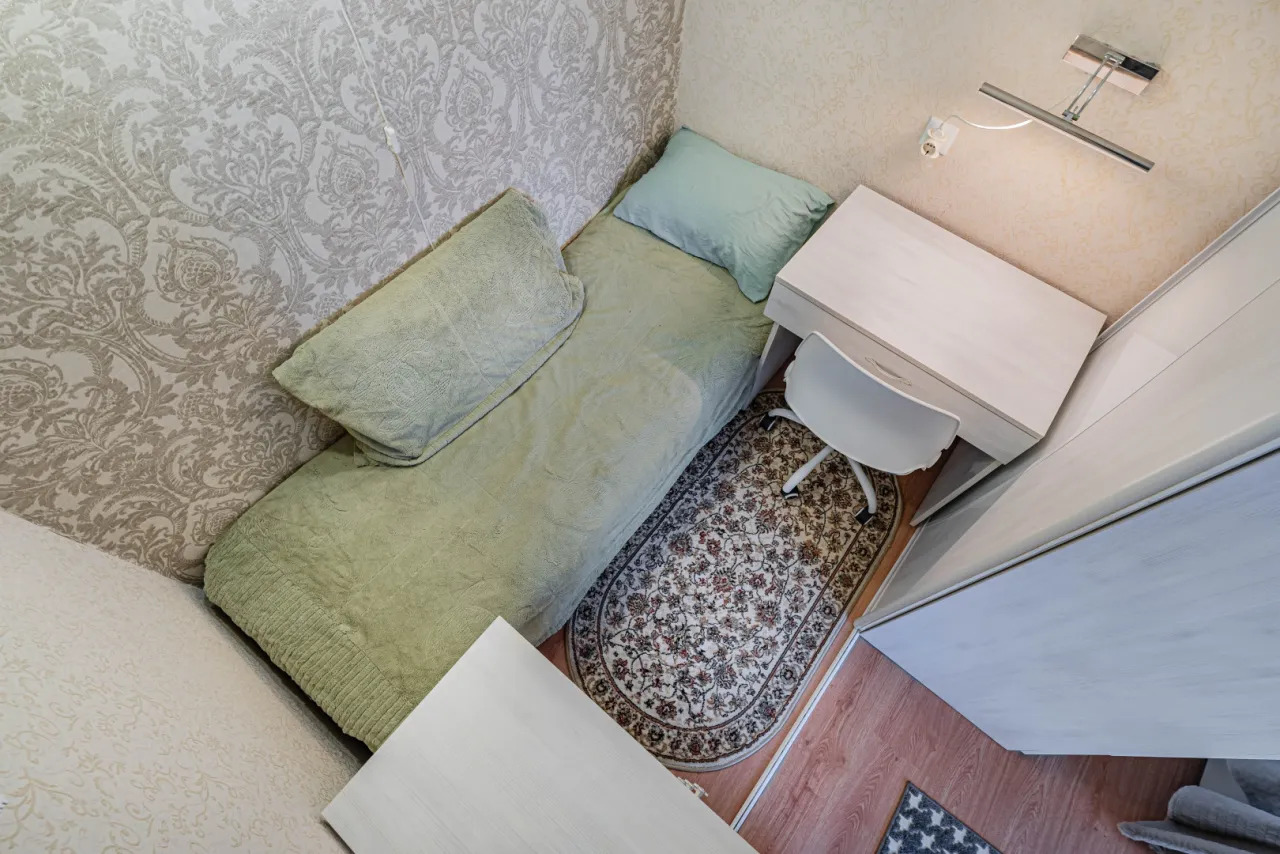 Отметим, что в комнате есть разделение зон, два спальных места. Такое разделение подходит для семей с детьми и для семей с родителем в возрасте.