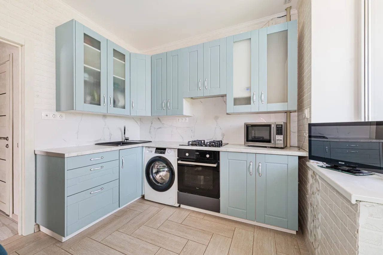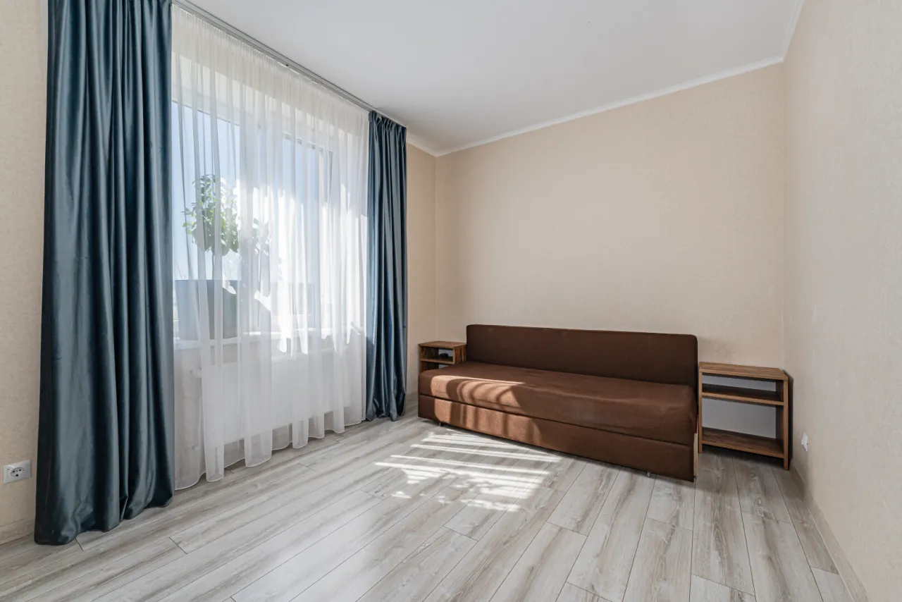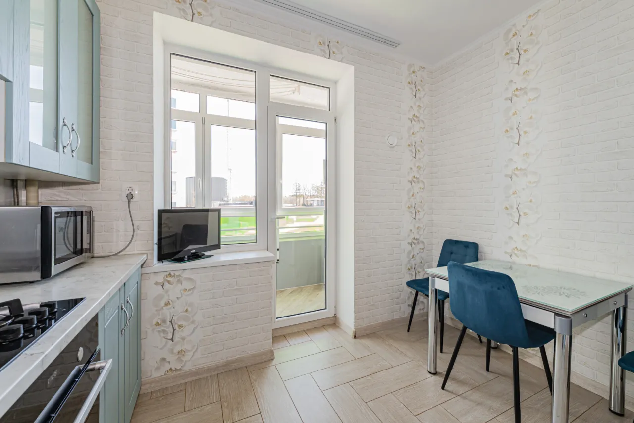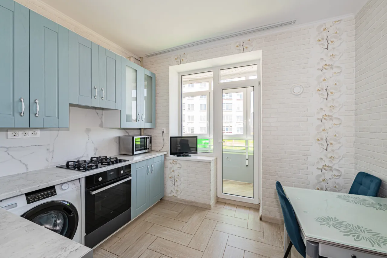 Выполнен современный ремонт в светлых оттенках, установлен теплый пол по всему периметру квартиры, потолки дышащие отштукатуренные, установлены шкафы для хранения, спальные места (детские и взрослые), встроена удобная кухня с комфортными системами выдвижения ящиков, в санузле ванна.