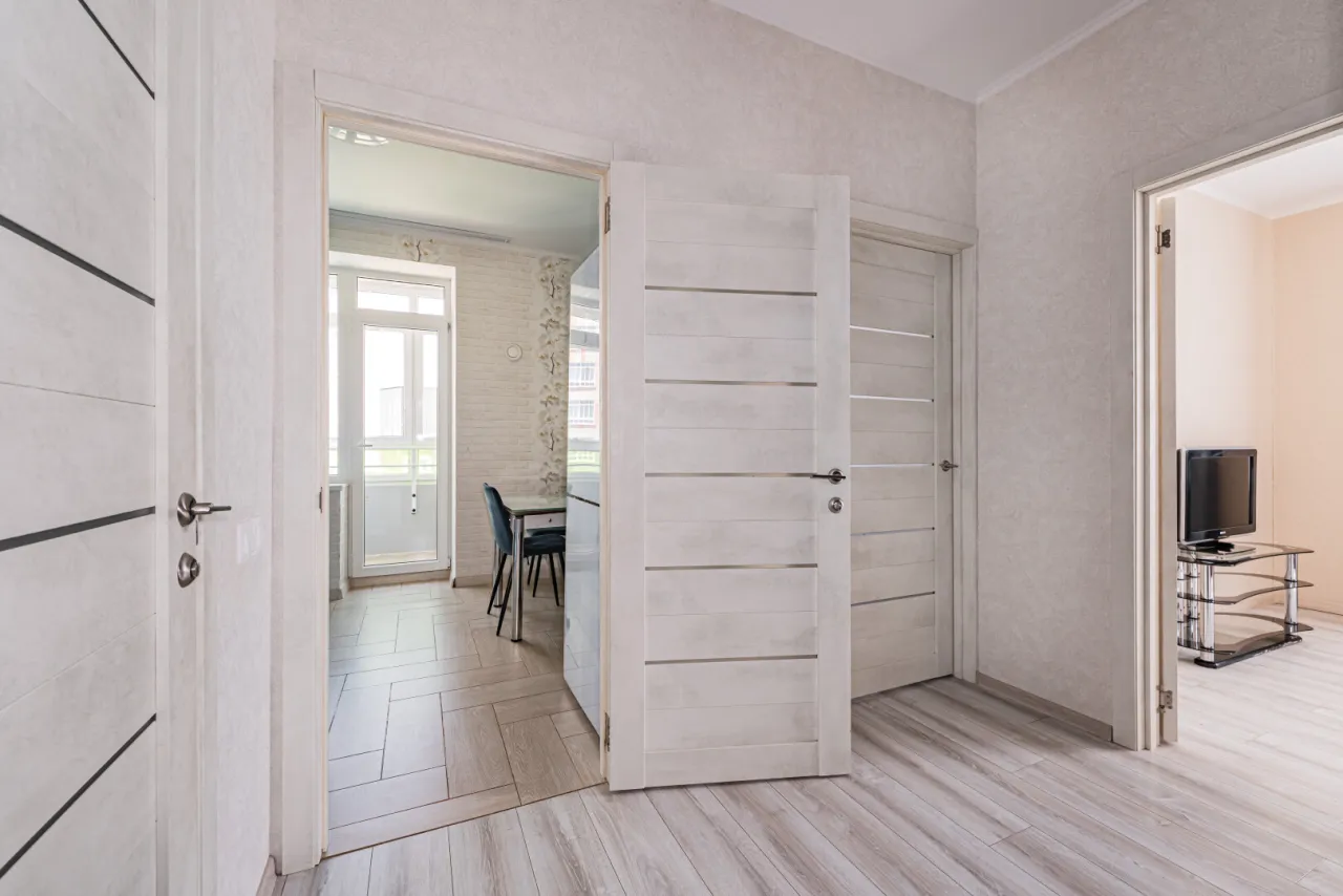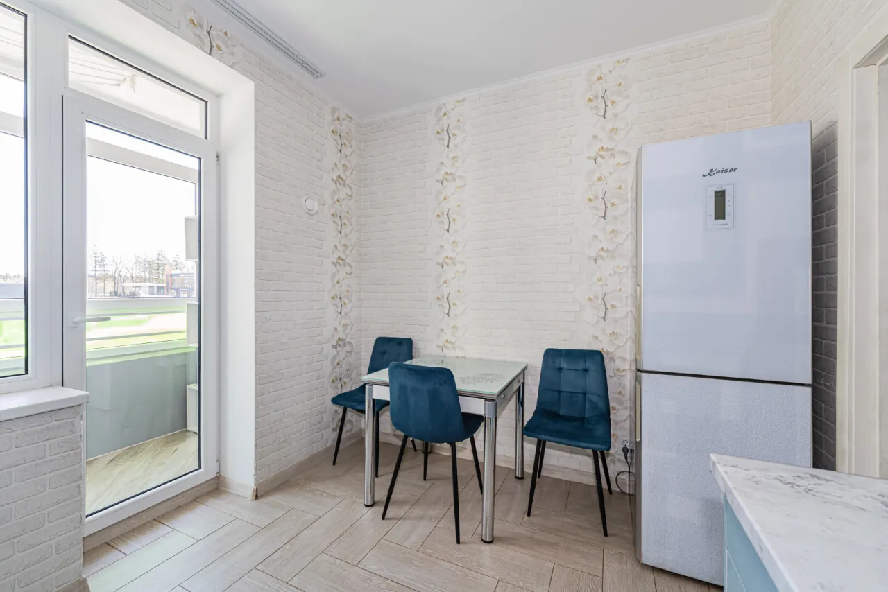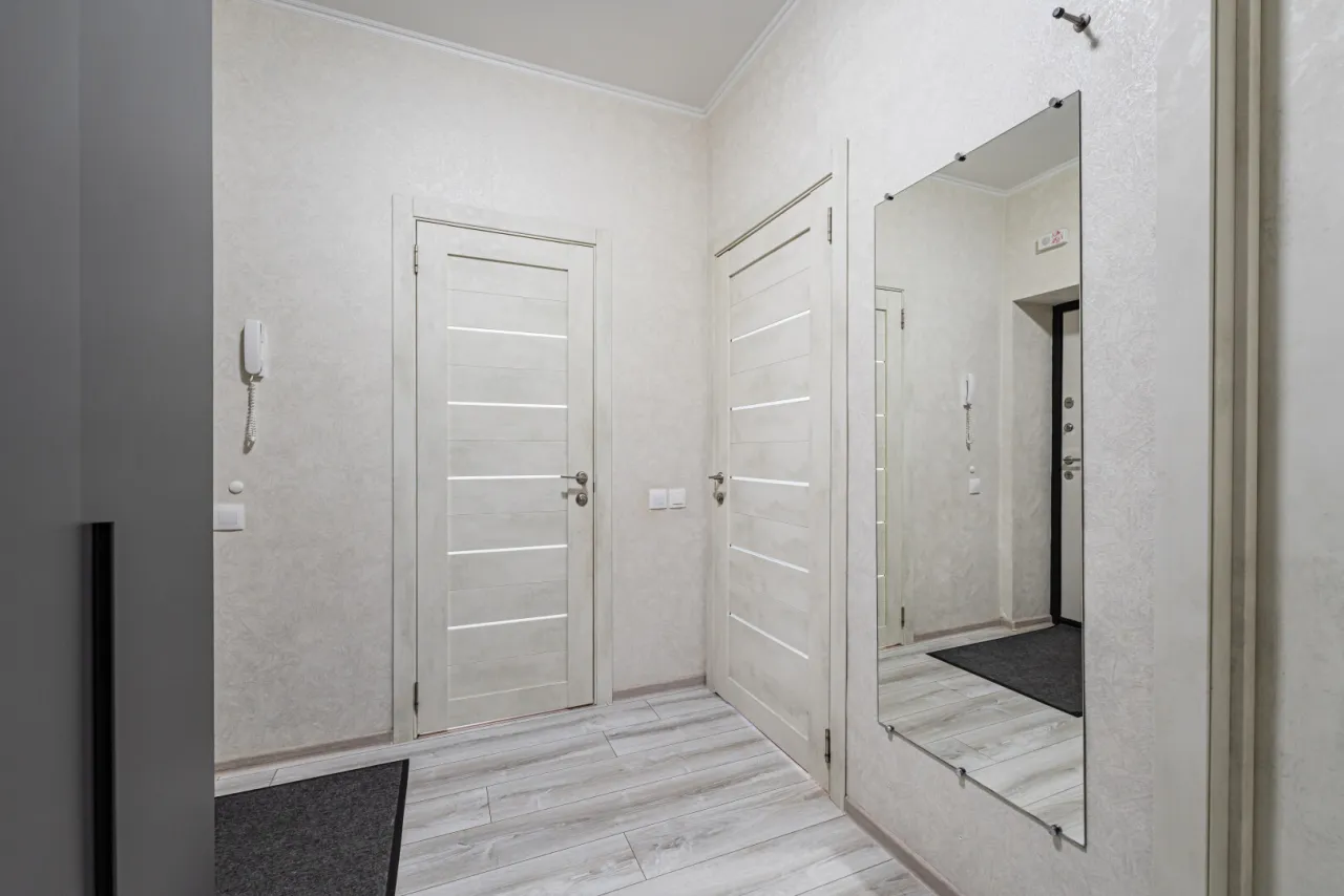 Двухкомнатная квартира на первом высоком, фактически втором этаже в современном комплексе ЖК Олимпия в городе Светлогорске.