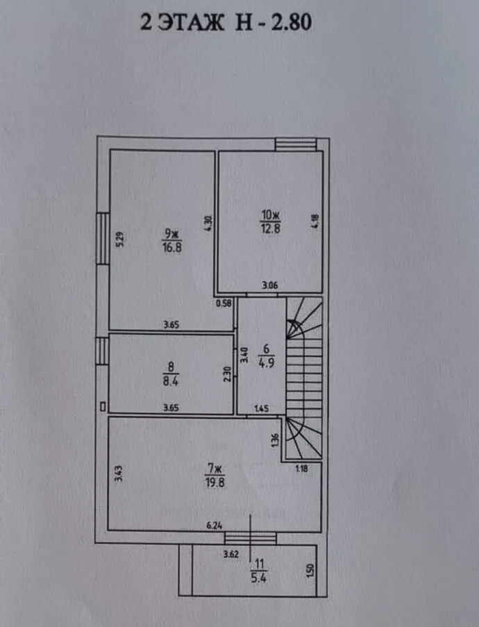 На втором этаже: три спальни(17, 13 и 20 метров) и санузел.