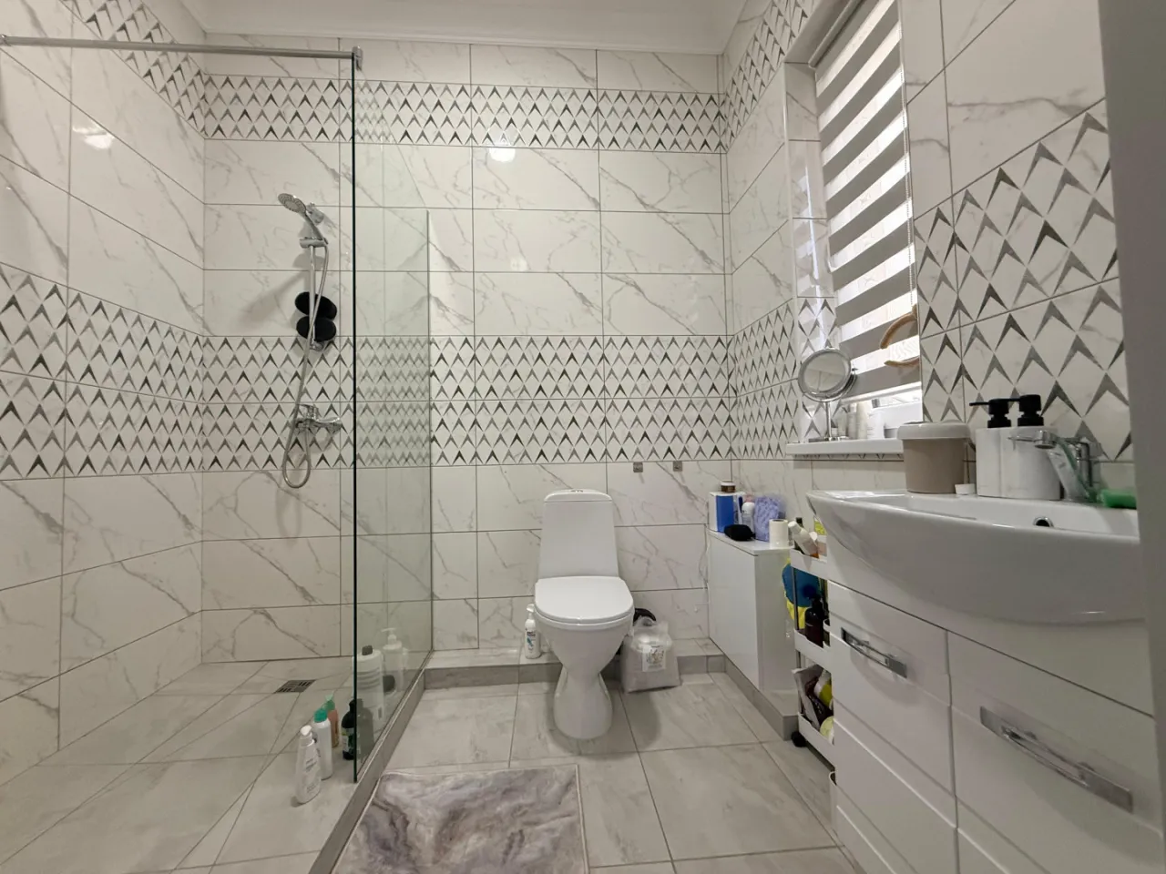 В доме два санузла, просторная гостиная, мастер спальня и комфортная детская. Также предусмотрена гардеробная комната, теплые полы добавляют уюта. Отопление газовое, двух контурный газовый котел ( минимальные коммунальные платежи), центральная вода, универсальный септик - самоочищающийся ( на 2027 год а прогнозах центральная канализация).