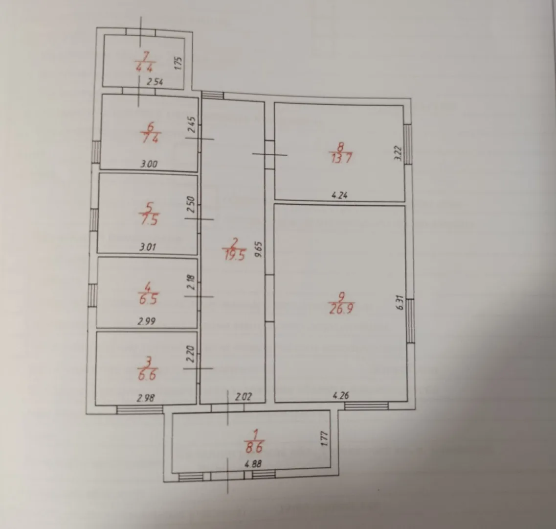 -три комнаты -6,6; 6,5 и 13,7 метров,