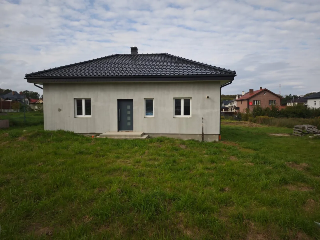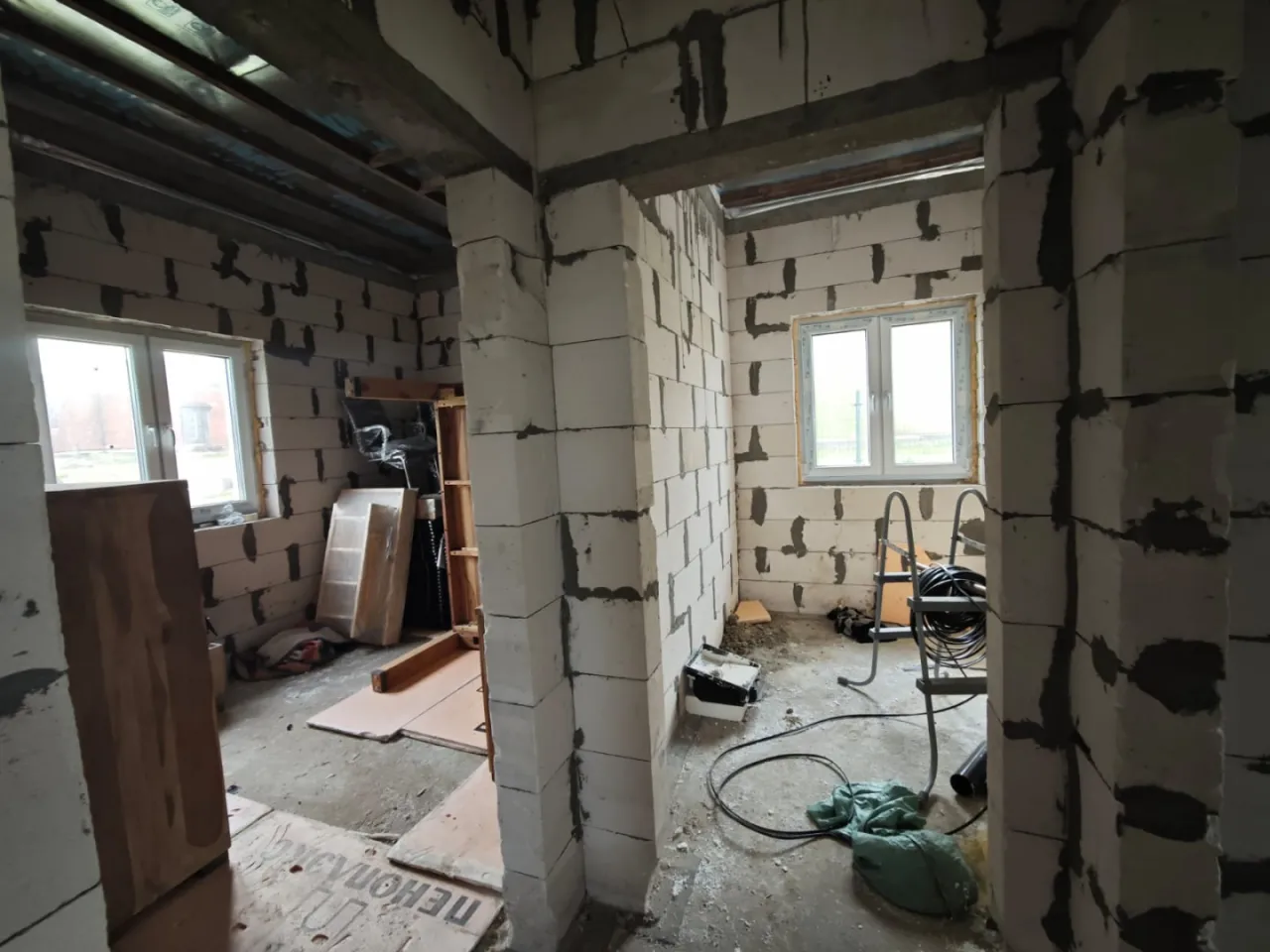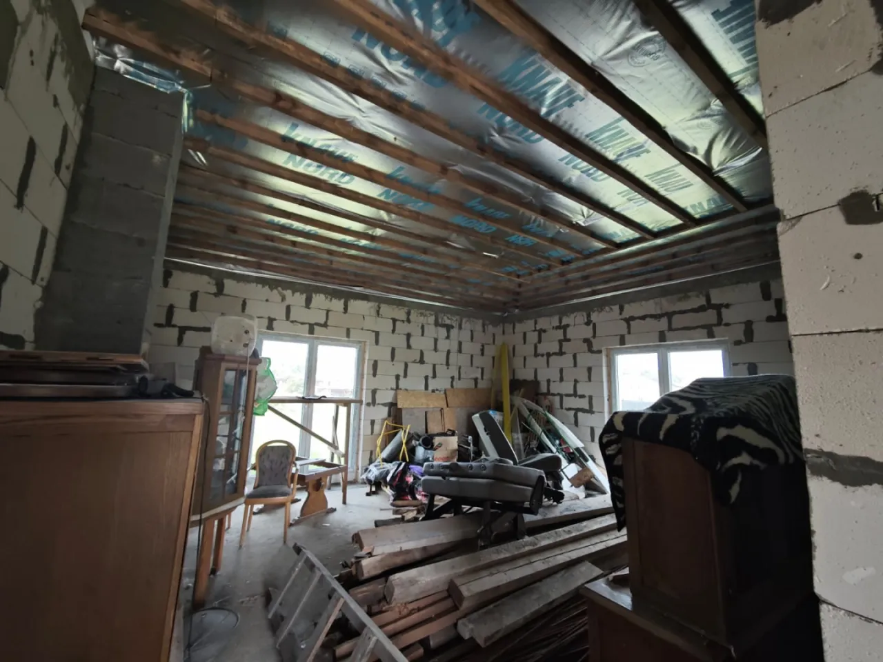 • Построен из газосиликата 30 см, черепица керамика, фундамент ленточный.