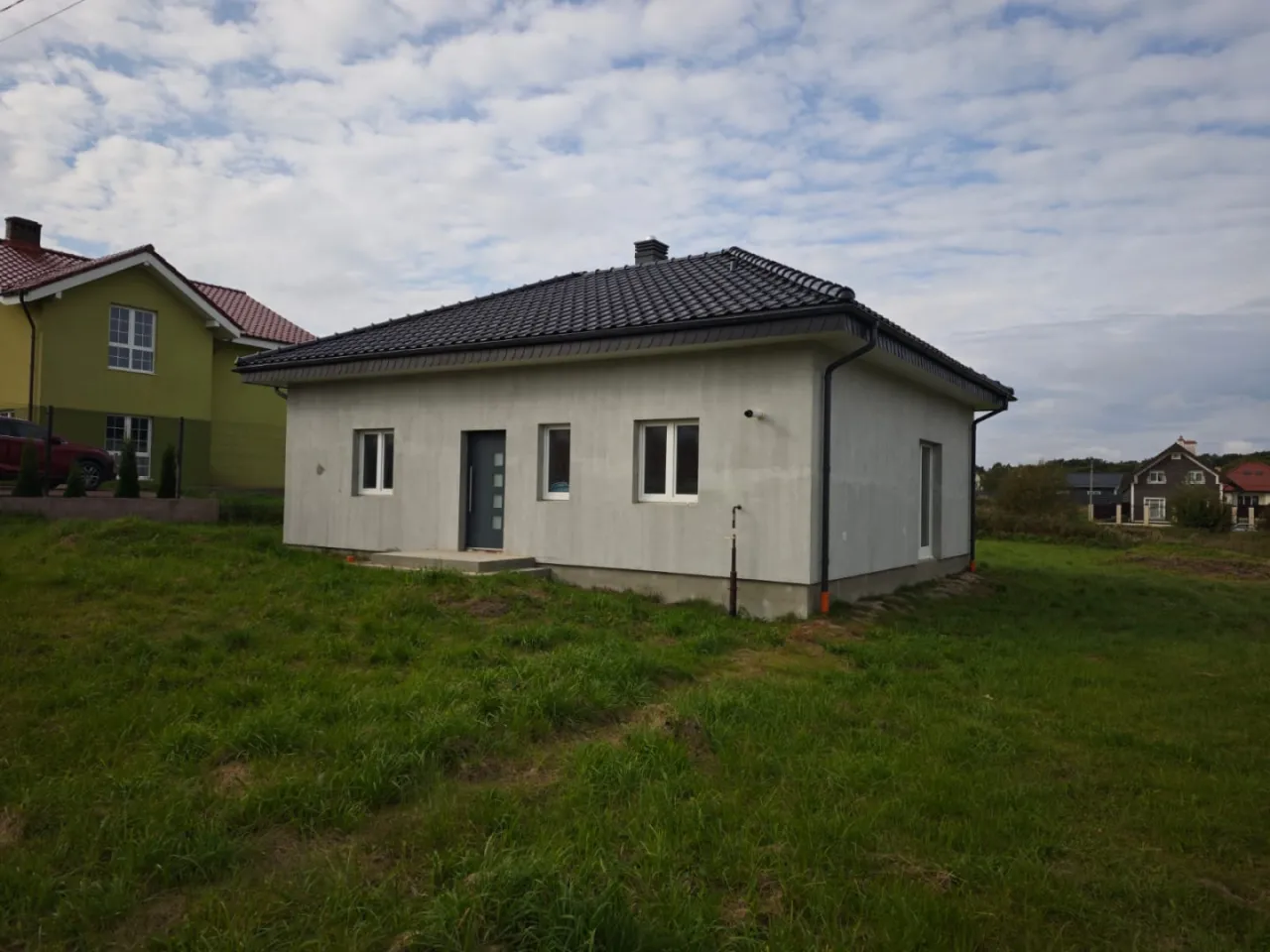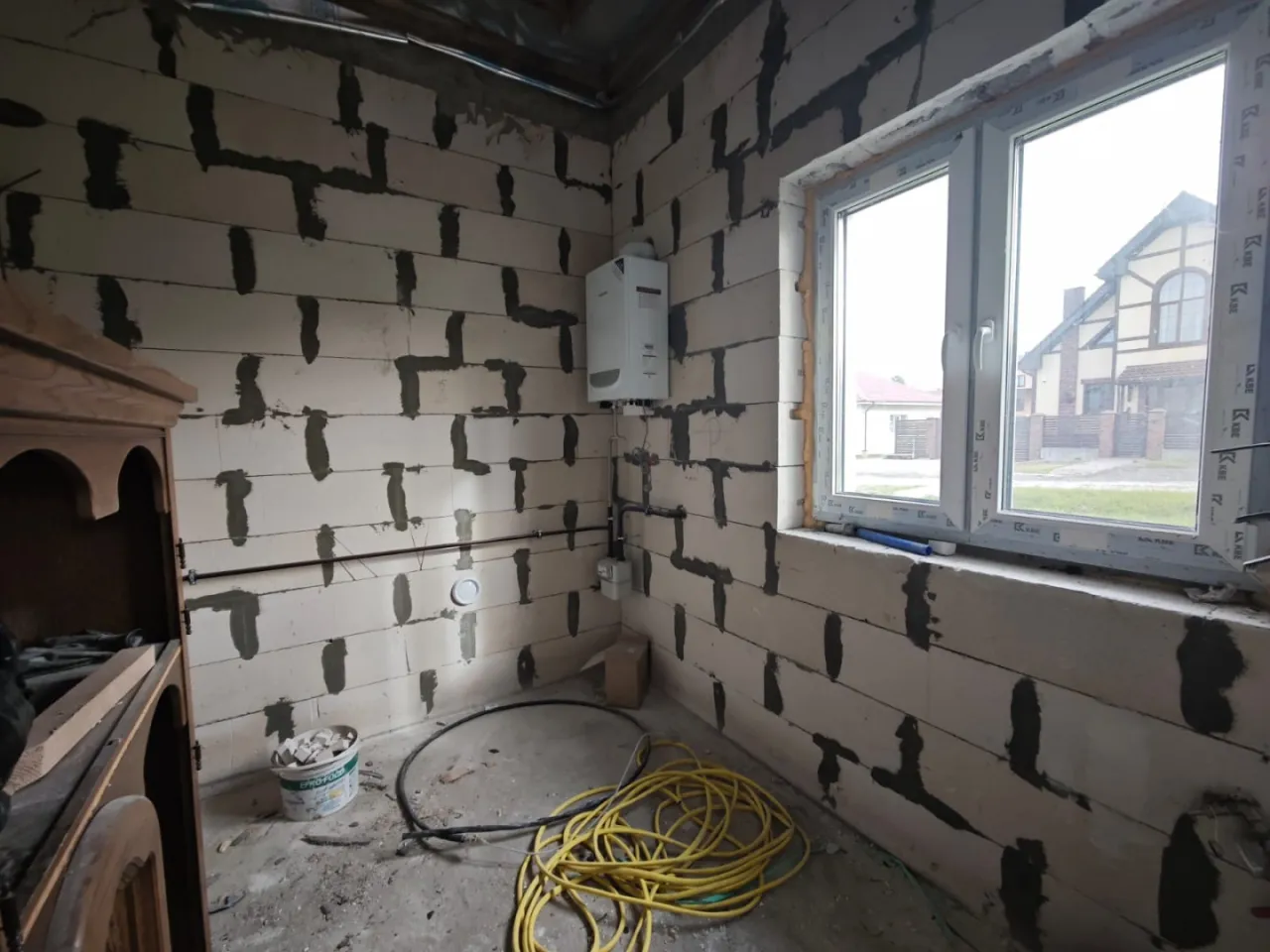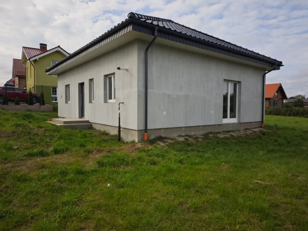 • Построен из газосиликата 30 см, черепица керамика, фундамент ленточный.