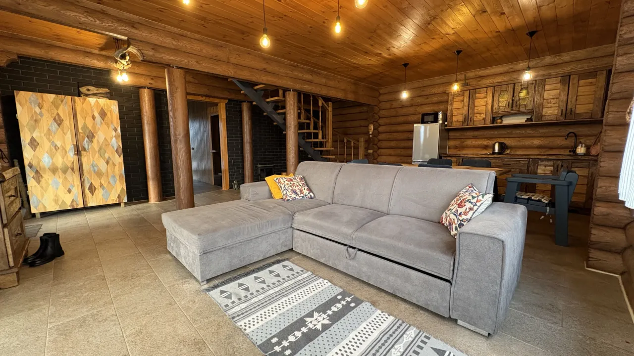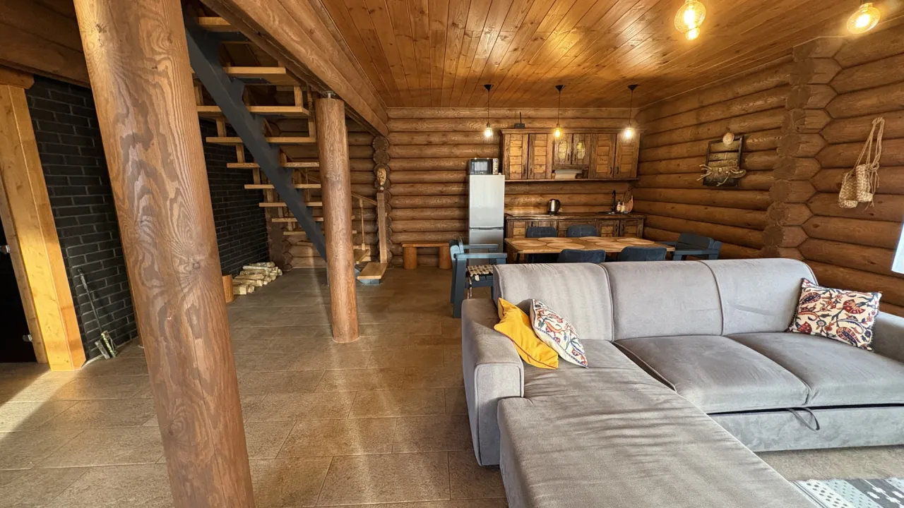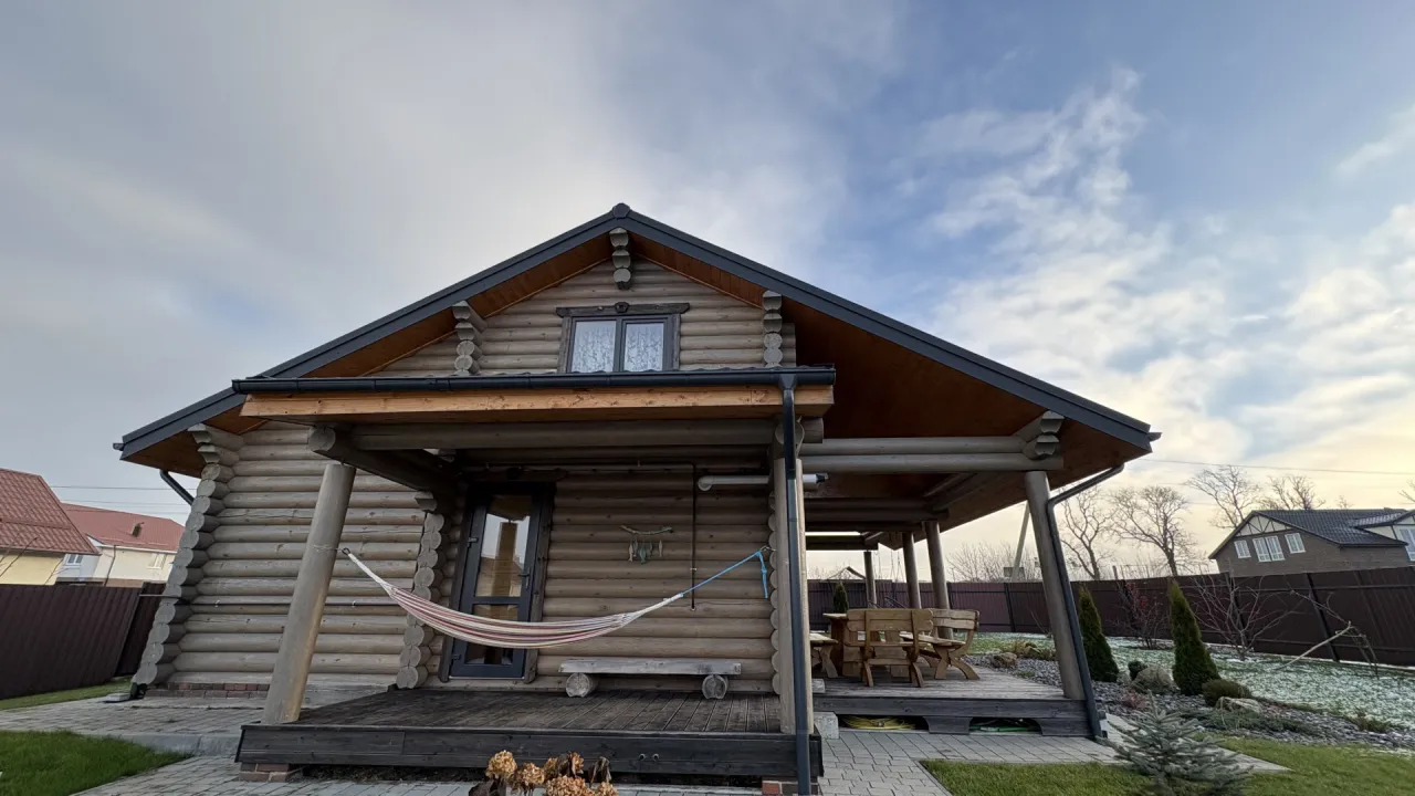 Сруб построен в 2022 году из бревна 24 диаметр "Северный лес" Балтик-Дом, фундамент ЖБ плита, крыша перекрыта немецкой метало-черепицей, русская баня на дровах прям в доме.