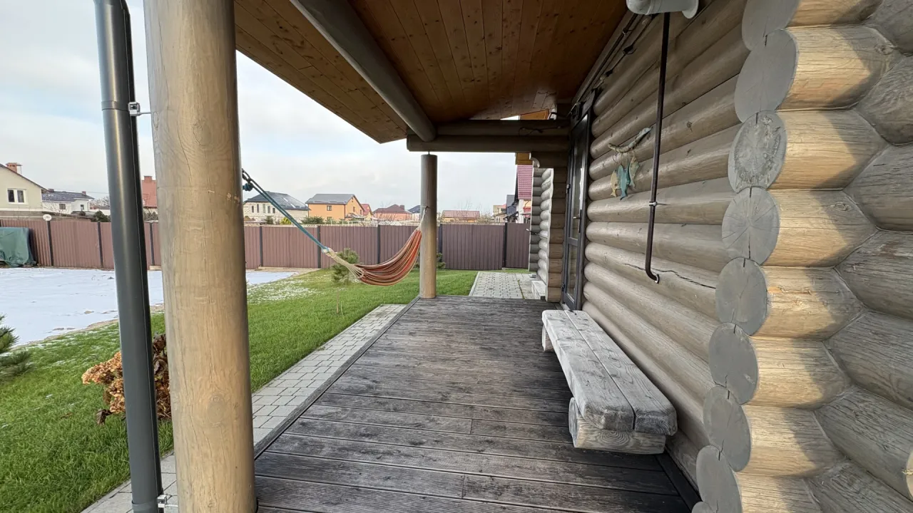 Сруб располагается на центральной улице коттеджного поселка Заостровье 1, в 15 минутах ходьбы от спуска на пляж, 5-7 минут от сетевых магазинов, удаленность от города Пионерского 15-20 минут не спешным шагом.
