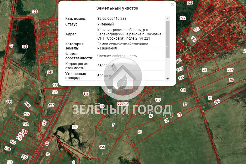 Код объекта: 1573896. Участок в СНТ "Сосновка". Участок огорожен забором. Электрический столб рядом.