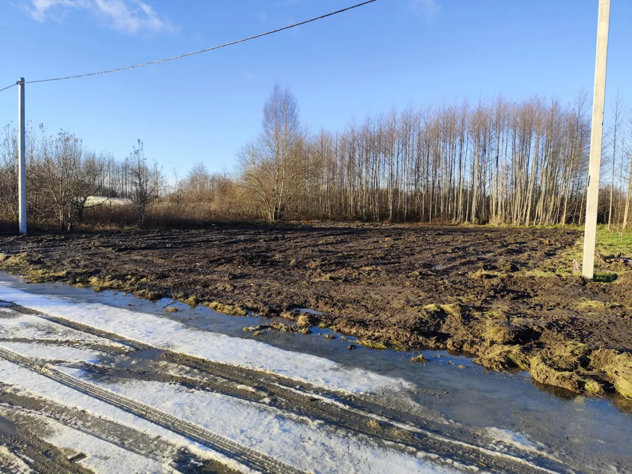 Электричество - столбы вдоль участка.